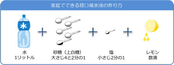 特に1時間以上にわたって運動をするような場合は、糖質を4~8%含んだものを摂取することがポイントです。手軽という事では、冷たいイオン飲料、経口補水液の利用が一番ですが、自分でも簡単につくれます。
